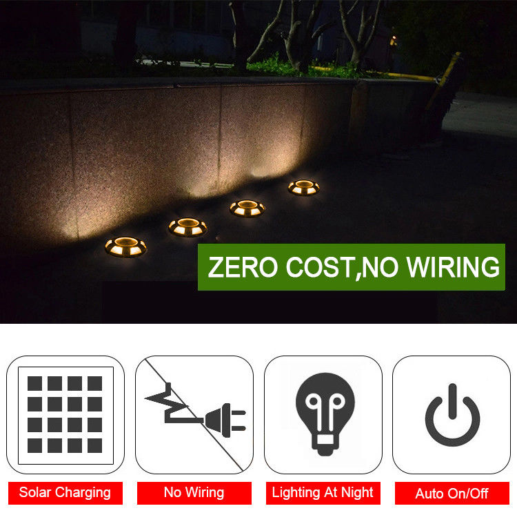 The solar deck lights is made of aluminum alloy, solar panels, led and storage battery. With its wireless design, no need for hand controlling, simple, safe.